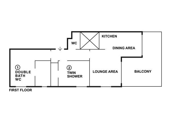 1 Twin with shower & separate wc. Please note, there is little space between these twin beds