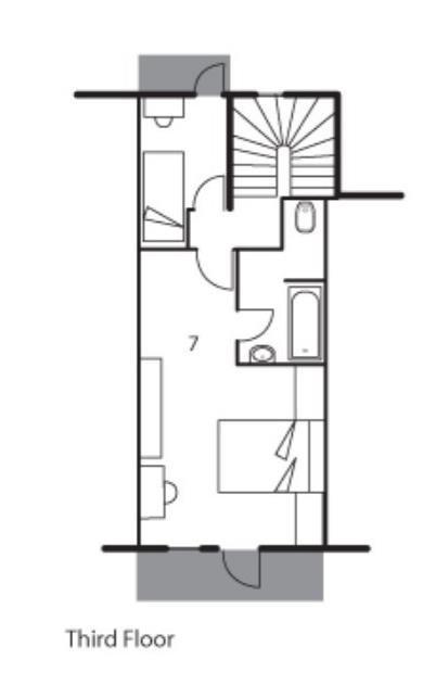 A single bedroom is available at the third floor, the room shares the bathroom with room 7.