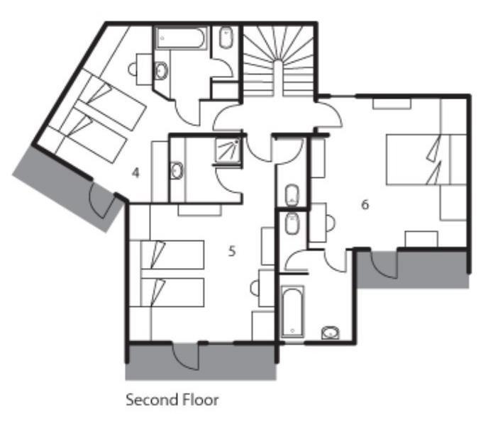 Room 5 - Twin with ensuite shower room, handbasin, wc and balcony.