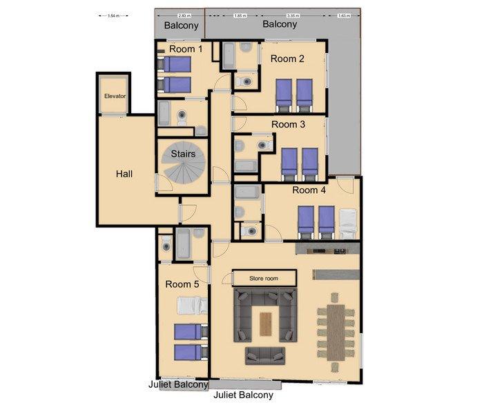 At the entrance, you will find a boot room with heated boot lockers. The living/dining area is spacious and bright with beautiful and modern furnitures. The kitchen is fully equipped and open to the living area. The bedrooms are en-suite each with large walk-in showers and a balcony.