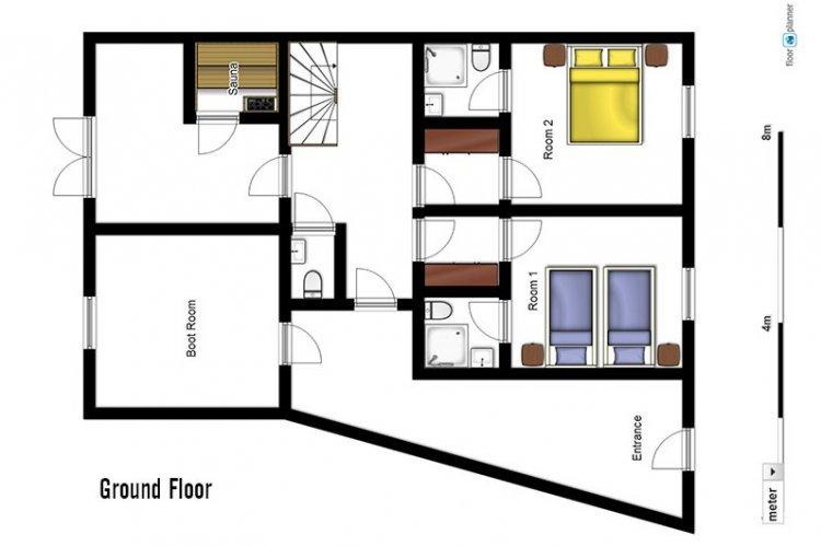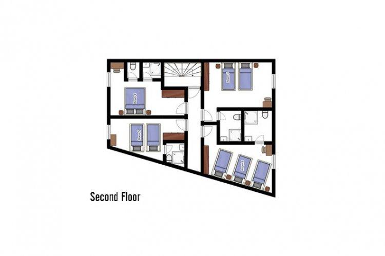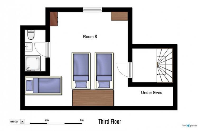 Room 8 = twin (plus additional single bed) with shower and WC (under eaves)