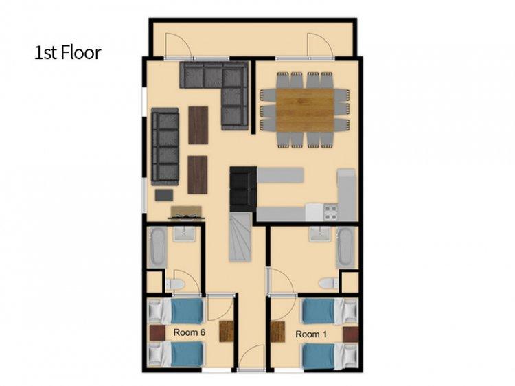 A great accommodation for skiers and boarders that are looking for quick access to the slopes. Large sofa and dining table, perfect for large group or families. All rooms are en-suite and offer lot of space and storage options.