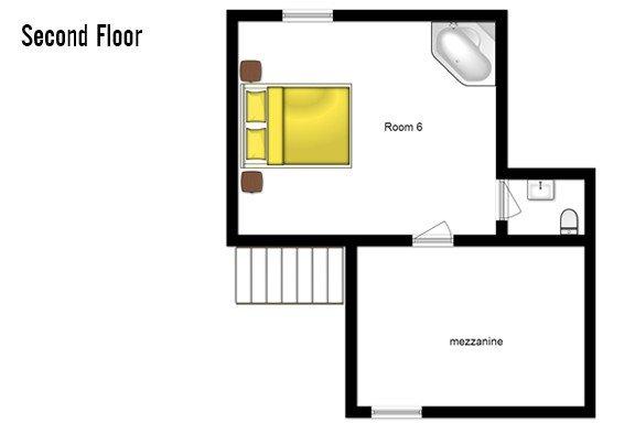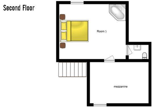 Room 5 = master double with open-plan Jacuzzi bath and separate WC- suitable for a cot
