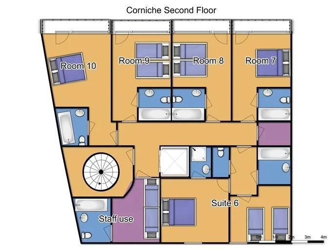 Suite 6 -sleeps 4- Double bed, twin beds (separate sleeping area), bath and WC