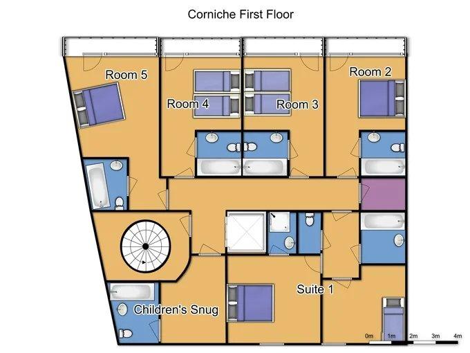 Suite 1 -sleeps 4- Twin beds, bunk bed (separate sleeping area), bath, shower and WC